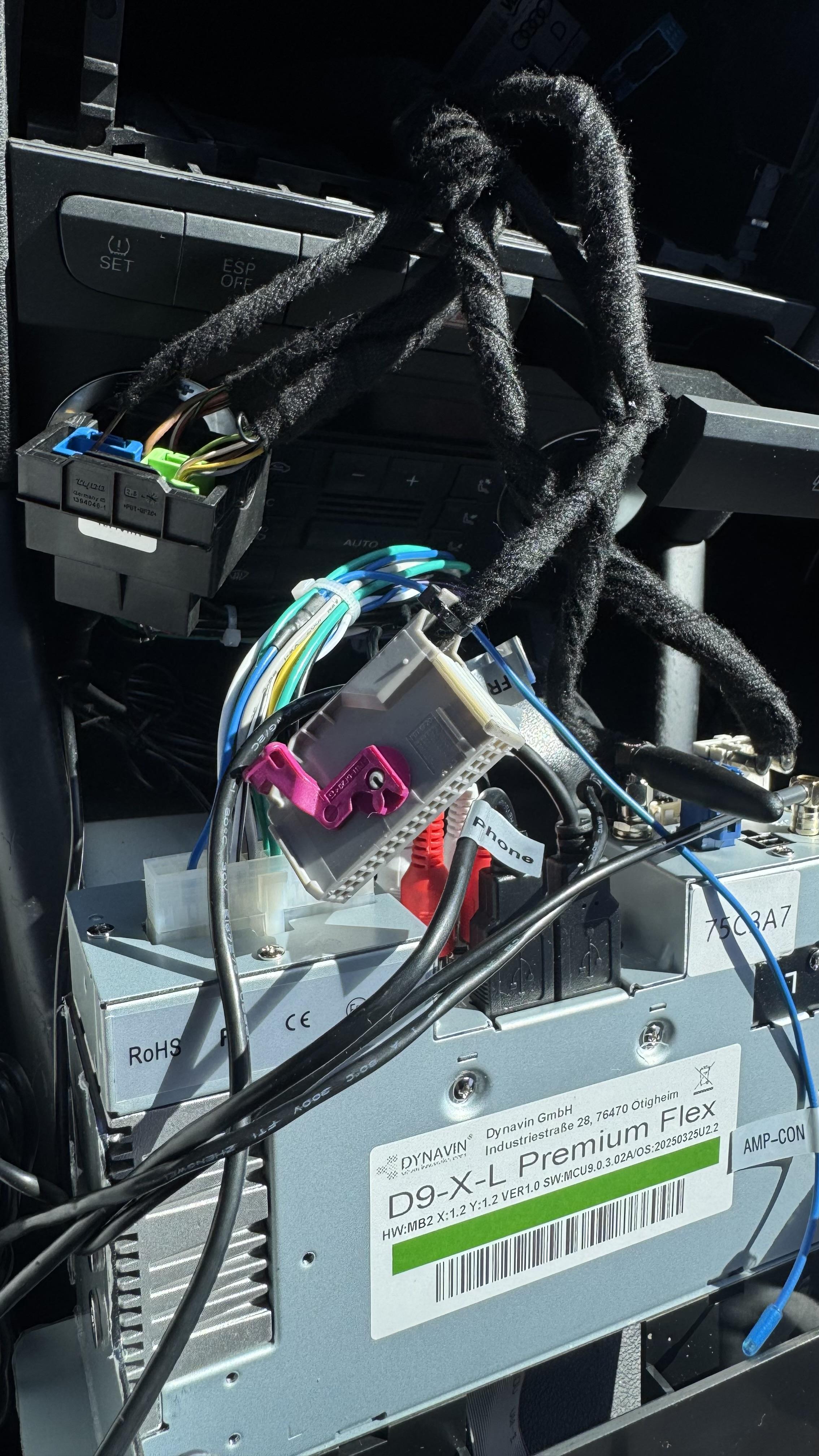 Czesc wszystkim, Mam Audi A3 CC 2008 z radiem Audi Navigation Plus z systemem Bose. Kupilem w Centrali Dynavin radio D9 Premium Flex. Niestety radia Dynavin nie moge podlaczyc. Swieca tylko przyciski, trzeszcza glosniki. Wg mnie brakuje slotu na szara wtyczke z fioletowa blokada. Mialem w zestawie dwa kable z czarna kostka. Czy tu czegos brakuje w zestawie? Jakis kabel Quadlock?